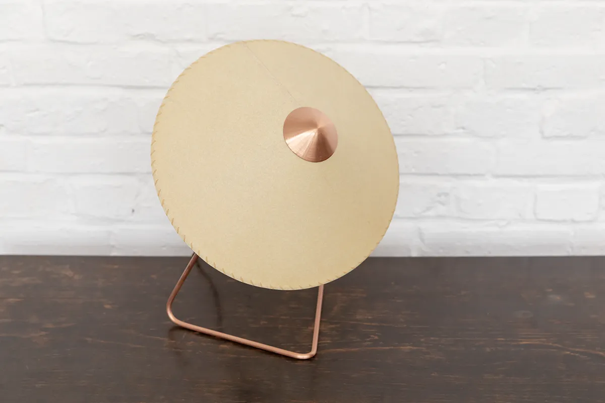 Der konisch geformte Leuchtenkörper und das filigrane Metallgestell greifen die typischen Formen des Raketenzeitalters auf – ein frühes und stilprägendes Beispiel für das in den 1950er bis 70er Jahren populäre Space Age Design. Die sogenannte „Sputnik-Ästhetik“, benannt nach dem ersten Satelliten im All, stand für Aufbruch, Zukunftsfreude und technische Eleganz. Dank der durchdachten Konstruktion kann diese Leuchte sowohl als Tischleuchte wie auch als Wandleuchte genutzt werden – ein flexibles Lichtobjekt mit Charakter.
